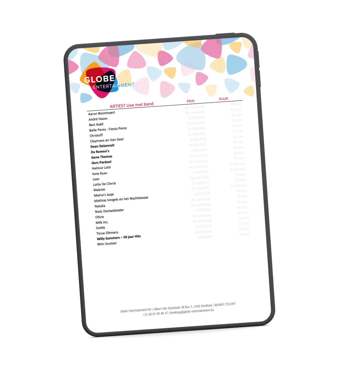 B2B-Prijslijst Vlaamse topartiesten